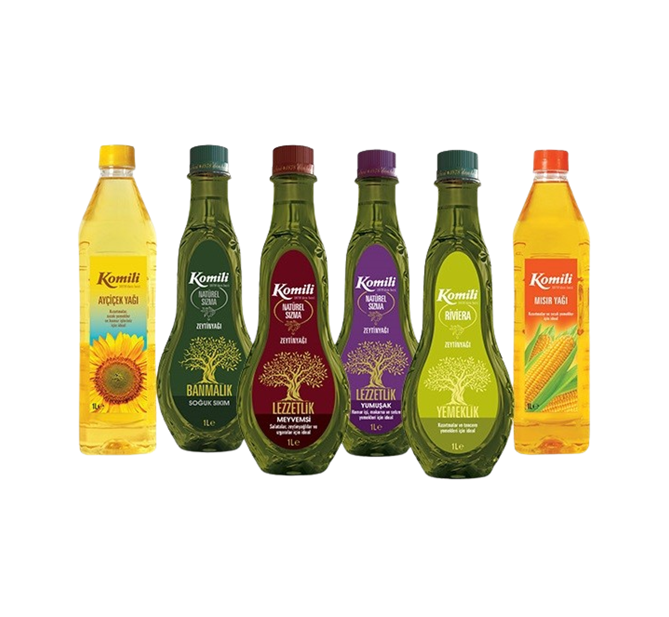 Komili’nin zengin ürün portföyünde zeytinyağının yanı sıra ayçiçek ve mısır yağları da bulunuyor.